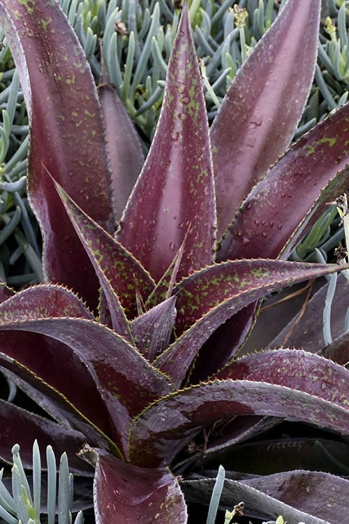 Growing 8 to 12 inches tall and 18 to 24 inches wide, the Mission To Mars Mangave is ideal for use as an accent in small spaces and as a solo or combined with other plants with low water needs in containers, or in groupings in larger spaces. It looks very nice and right at home around rocks and boulders. A fine addition to rock gardens, succulent gardens, red theme gardens, tropical look gardens, and Xeriscape Gardens (low water needs). We like combining Mangave with other low water need plants such as sedums and other succulents, junipers, barberry, abelia, and ornamental grasses.