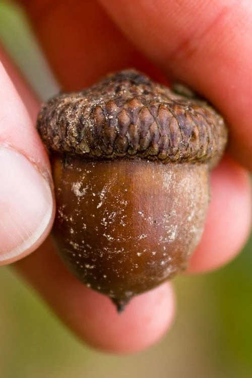 Fruit: Yes, copper-brown acorn nuts are edible after tannins are boiled or leached out,